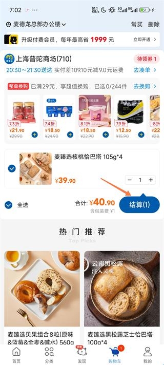 4、随后去购物车板块点击结算;