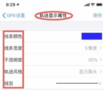 4、接下来,再在GPS设置页面打开设置轨迹属性,可以设置记录轨迹的线条颜色线型等属性。