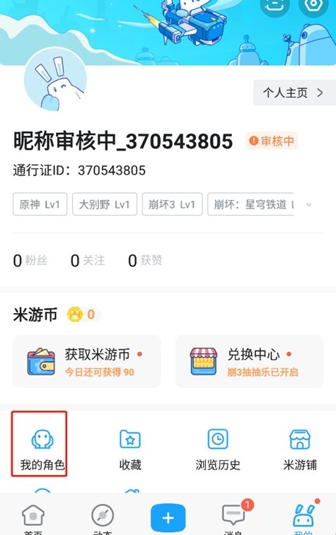 1、打开米游社app,进入软件,点击在我的栏目中选择我的角色;
