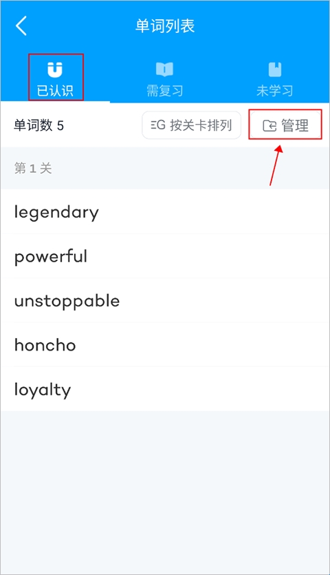 3、点击“已认识”——“管理”