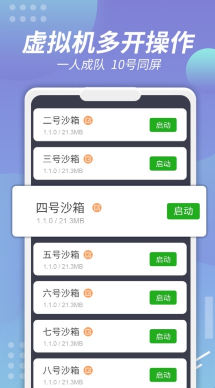 2、满足游戏多开,画中画,悬浮球操作,熄屏后台运行等多功能的沙箱盒子