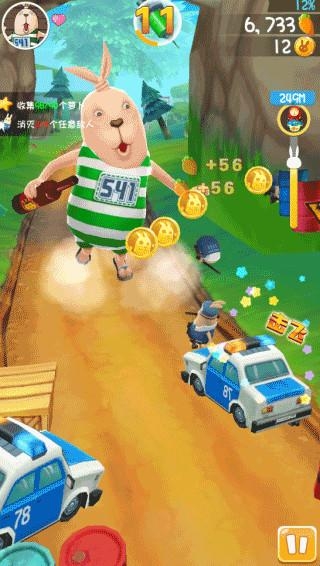 逃亡兔手机版是根据卡通短片《越狱兔》改编而来的闯关跑酷手游,游戏完美复刻的了兔子的形象,还为玩家提供了丰富的道具,还能通过金币升级,增强战斗力,奔跑起来速度更快,精致的3D卡通画面能让你更轻松,感兴趣的玩家快来下载体验吧!