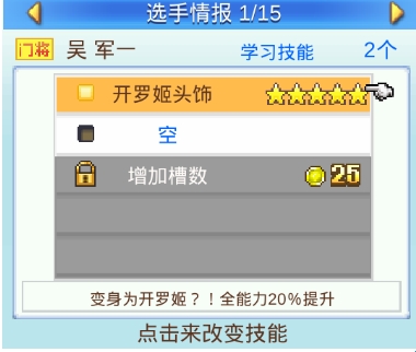 4、开技能栏,每个人物上限5个,有的天生开的多,有的少的就需要奖牌开。