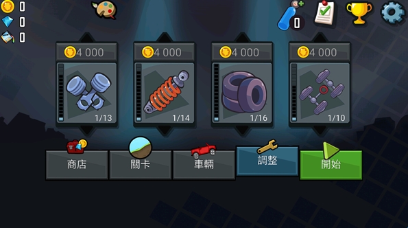 1、挑战模式传承了登山赛车经典无尽模式。现在有四张探险地形图。