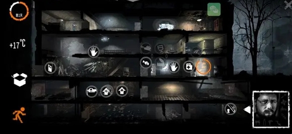 住着饥饿的画家,去的时候给他带个生肉就能够他活到战争结束,然后他会带你去地下室获得两个钻石和一瓶酒精,并且全家满足。一个锁,一个栅栏,大量材料,无食物,有电子元件与零件。