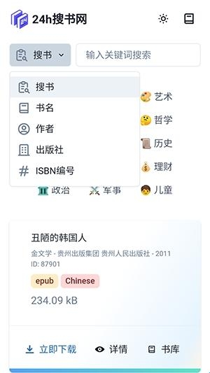 3、支持通过书名、作者、出版社和ISBN编号等多种方式进行搜索,