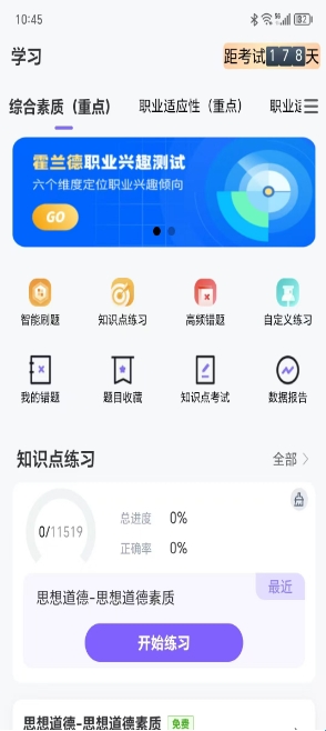 3、资讯版块实时更新最新的资讯,学习版块提供智能刷题、知识点习题和高频错题。