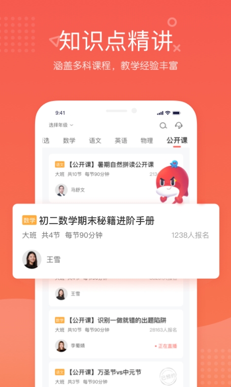 双师教学模式——名师主讲负责“懂”,个性辅导负责“会”,知识能力“双提升”。主讲老师均从清北哈佛等毕业,平均教龄达10年,人均在线授课经验超5000小时,经由6轮选拔,受聘比例仅5%,且对学生学习效果负责,期末考核末位的老师会被淘汰,留下的是经由平台和用户共同检验过。