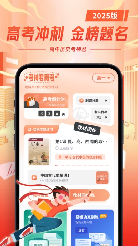 考神君高中历史app,轻松解决知识点杂乱问题,app内总结归纳各个基础知识点,一点一看完美get,学习把基础打下,题目万变不离其宗!