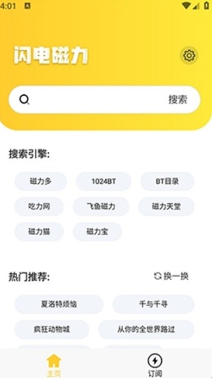 闪电磁力官方正版app是一款能找到超多资源磁力的搜索工具,各类优质的资源都是能轻松找到的,有感兴趣的资源,随时随地都可以来一键搜索,这里有大把的视频、影视、漫画、小说等资源在这里都能提供给你,有需要的用户可以来下载!