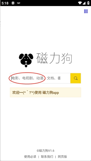 1.下载安装磁力狗最新版后打开,在搜索框内输入指定内容