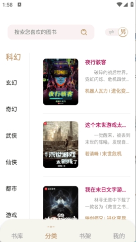 3、分类页面将小说进行了详细的归类,包含了玄幻、仙侠以及都市等类型。