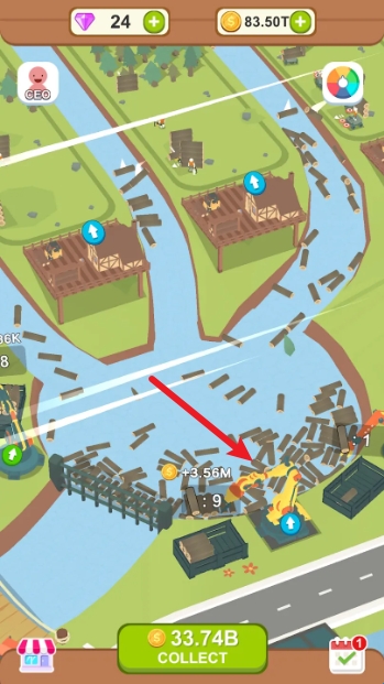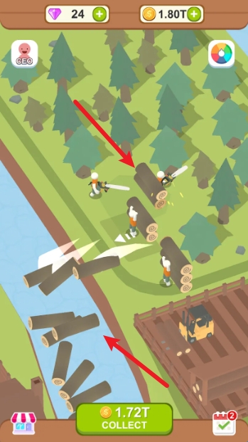 2、游戏中我们需要利用好顺流而下的小溪来运输自己的木材,就如同传输带一般帮助自己运送到指定位置,再通过加工来赚取利润。