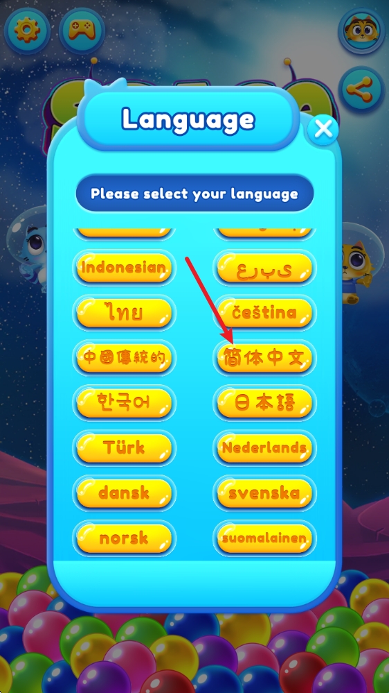太空猫泡泡龙怎么设置中文