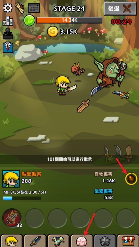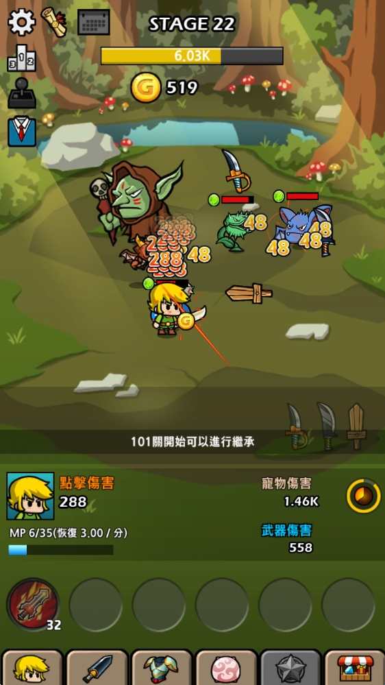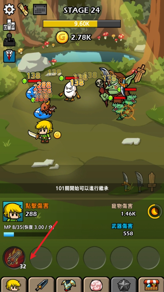 1、进入游戏后,点击屏幕即可控制勇者进行战斗。