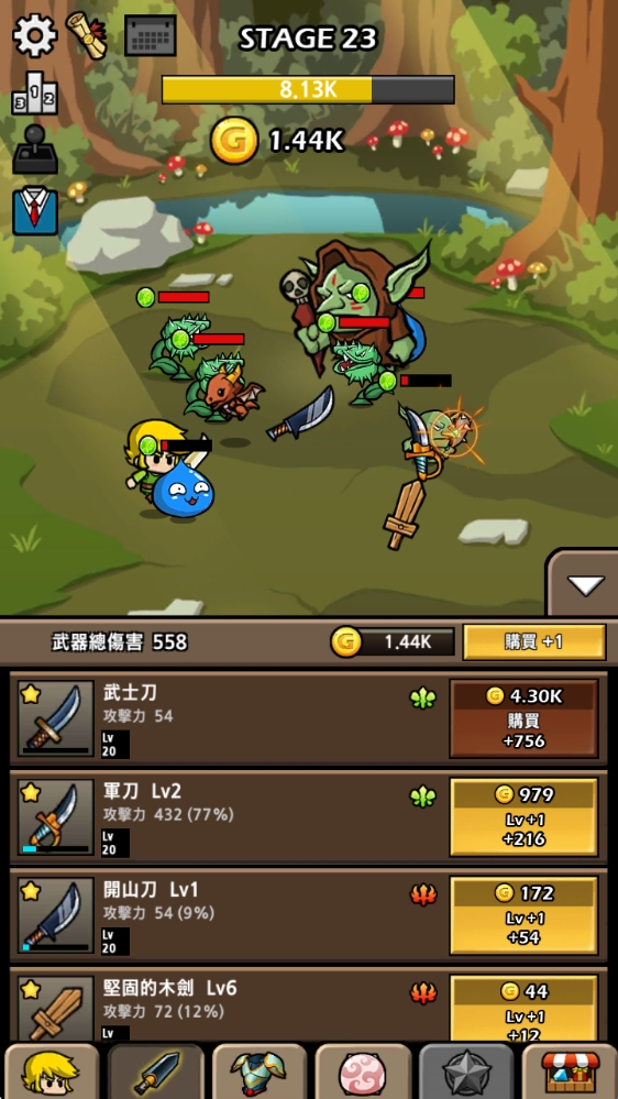 2、可以通过战斗来收集金币,消耗金币就可以锻造飞剑加入战斗。