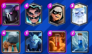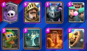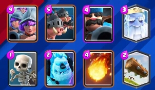 皇家猪是进攻核心,三枪是吃费反打利器,两张牌都吃火球,要学会在用一张骗出火球后用另一张做更多的事。幽灵可辅助进攻,猎人+小骷髅+冰人则要完成一切看似不可能的防守任务。此套牌实在非小编所能驾驭,就让秋季赛MVP Auk为你亲自讲解吧!