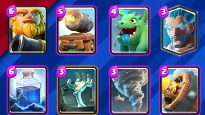 作为一套慢速卡组,此套皇家巨的精髓在于和对手打太极。除唯一核心皇家巨外,冰法飞龙炮车都是血量厚实的防守神牌,配合墓碑和3法术建起无敌防线。沉底皇家巨可逼迫对手下牌,打乱其牌序,当第二个皇家巨错开对手关键解牌时,便可配合后排返场、一波爆炸。炮车可换成更加扎实的蓝胖,而大电也可用火球代替。