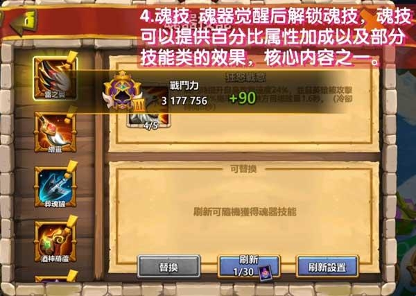 5、魂器精炼大幅度提升英雄属性,尽可能的选择单一属性,有额外的魂技等级提升效果。