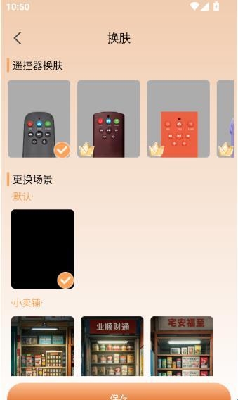 4.最后找到“遥控器换肤”模块下面皮肤主题选择后点击底部“保存”按钮就完成了