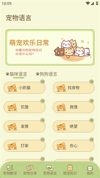 3、提供超多宠物语言,让宠物主人更好的了解宠物的表达;
