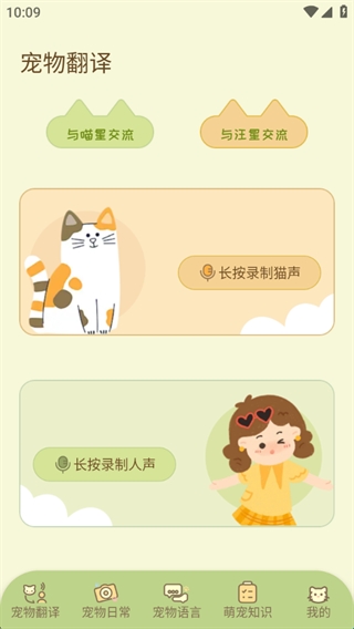 1、提供有趣的宠物翻译功能,可以轻松与猫狗交流;