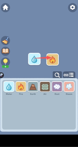 1.核心玩法集中于元素的自由操控与高阶融合,例如将火与土结合生成熔岩,再用水去冷却它形成新的陆地。