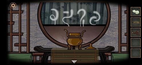 6、把玉葫芦给男主摔碎,用榔头咋开墙上裂痕。滑动输入白烟提示的字符。