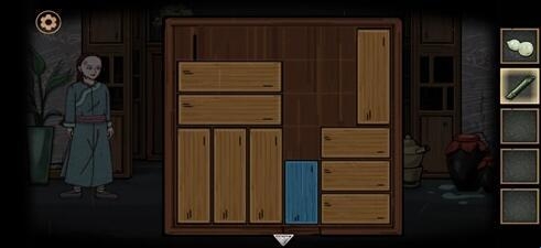 2、钥匙打开红色柜子第四格,获得?有画木块4。点击床上珠钗木匣,按照图形形状依次放入有画木块(注:正方形的对应菱形),获得?珠钗。