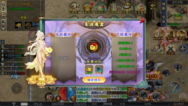 4、复活魔盒:消耗元宝和星辰碎片进行提升,能够在你死亡后以%50血量复活,CD120秒。