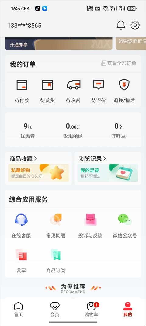 支持查看消费记录、成长值和等级进度,还可以自定义主题风格及收货偏好。