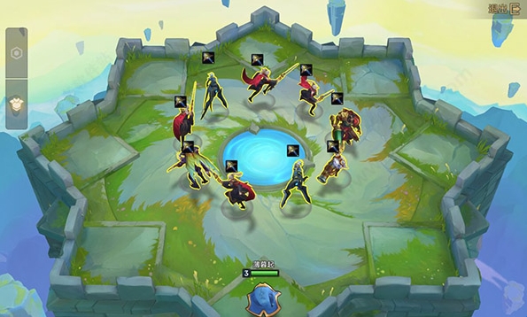 在进入游戏后,参与本局比赛的八名玩家的小小英雄会共同传送到选秀区域,在选秀区域抢到心仪的装备或棋子后(在每个阶段的第三个小回合都会有选秀环节)八名玩家会各自传送到各自的棋盘上。