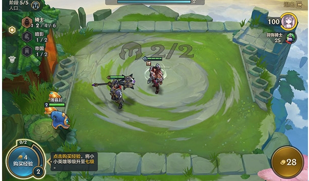 每位玩家都会拥有一只萌萌的小小英雄,初始血量为100。对战失败的情况下,依据场上最后存活的敌方棋子数量和等级造成伤害,高星级棋子对小小英雄造成的伤害更多,血量为0时即为游戏失败。同时小小英雄的等级也代表着人口上限,也就是可上场棋子的数量。另外,也有装备可以提高人口上限(这个后面会介绍)。在游戏左下角可以用金币来为小小英雄购买经验升级。