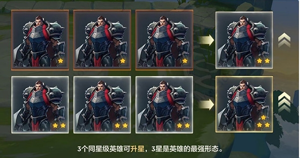 三个同样的棋子同时在场会自动合成+1★的高星棋子。合成高星级棋子后,棋子的全方面属性与棋子技能都会有所提升。