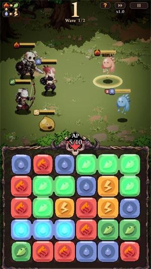 4、点击战斗开始后就可以开始闯关,有些关卡会在开始有一段剧情,剧情结束后就会进入战斗,进入战斗后玩家需要消除方块让角色攻击,每消除一个对应元素方块就可以让一位同元素角色进行攻击。
