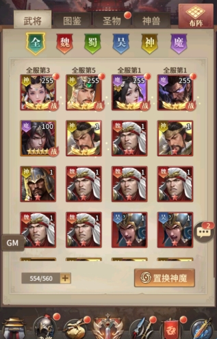 2、出战阵营:不同阵营的武将组合在一起有额外的属性加成以及阵营的克制效果;吴克魏克蜀克吴,神魔互为克制关系;