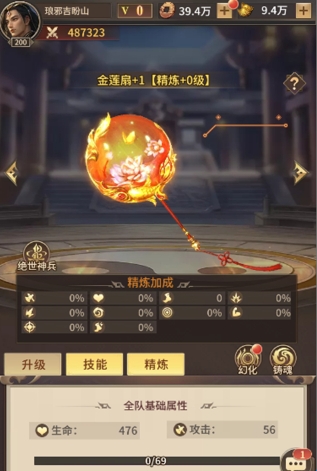 可使用精炼石提升神兵等级,提升神兵属性加成。