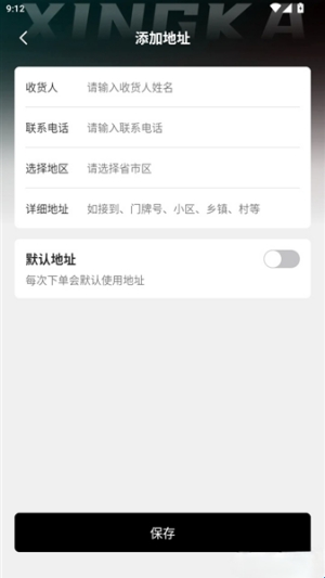 5、将收货人、联系电话、详细地址信息填写后点击“保存”即可添加管理地址。