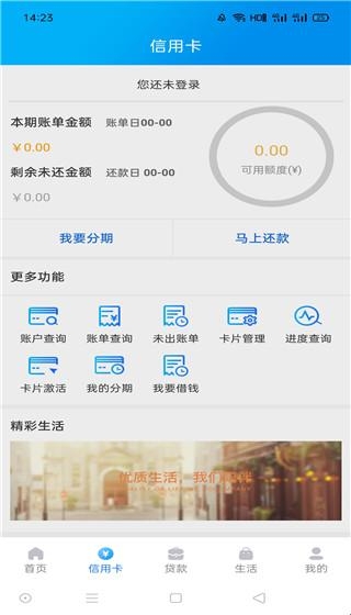 3、在“信用卡”中可以对自己的账号查询、账单查询、未出账单等进行操作;