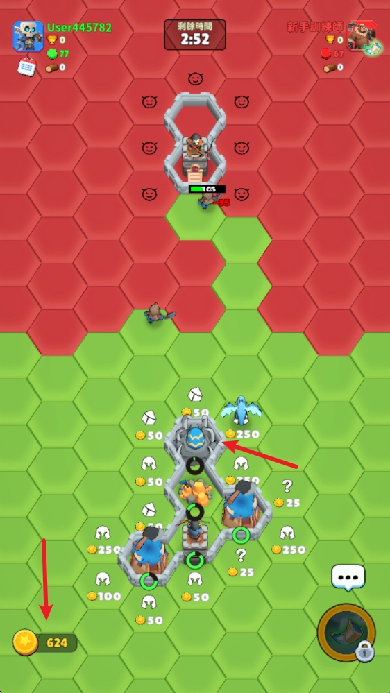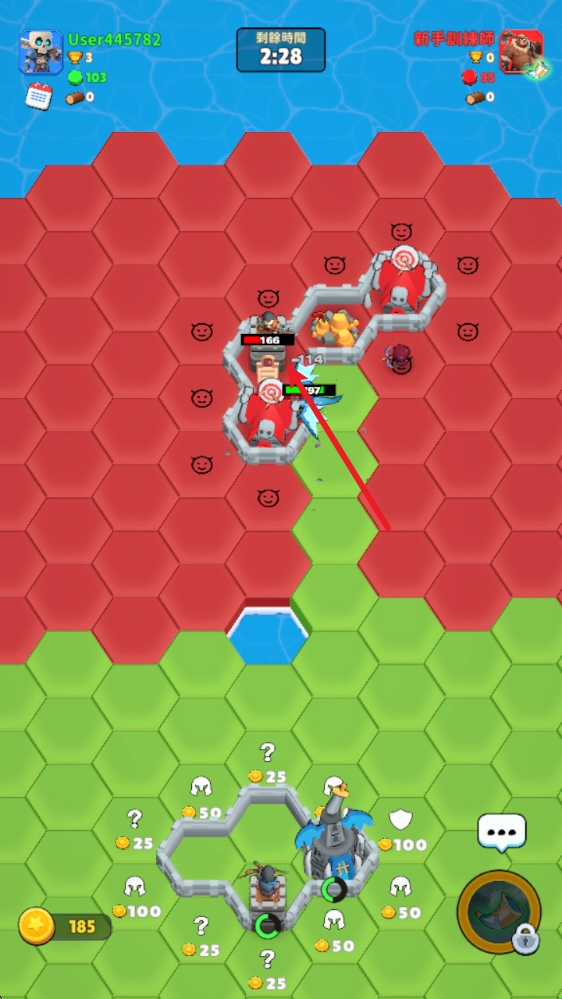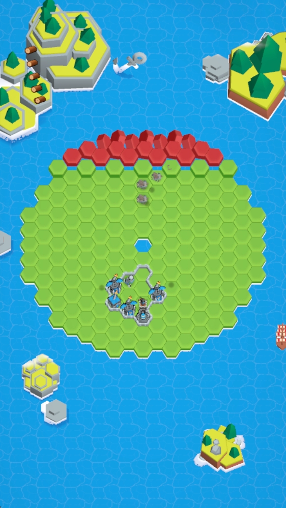 3、翻开的土地会随机出现防御塔或者战士,战士会自动前进,将对手领地变为我们的。