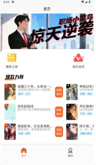 1、在首页中提供了最新上线的各类素材,用户可以点击获取素材进行获取;