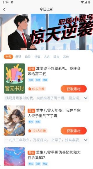 可以对各种小说资源进行浏览查看,可通过浏览小说的方式选择小说推广。