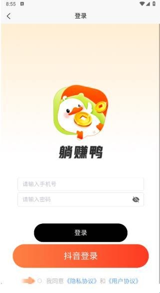 3、在登录页面中输入手机号和密码即可登录,也可以进行抖音登录;