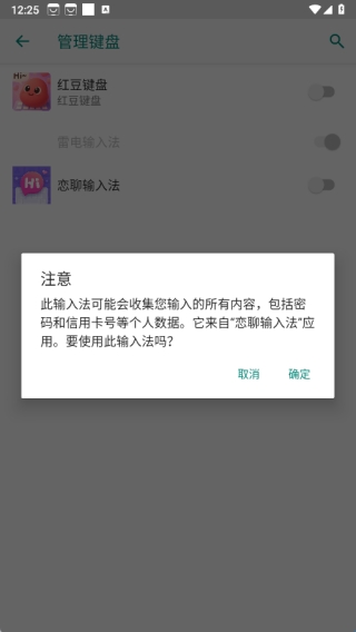 4、根据系统提示确认输入法切换,点击确定完成启用流程。