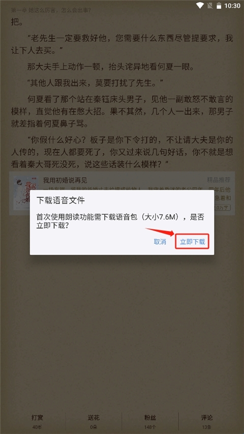 5、如果想要听书的话就需要下载语言包,点击立即下载。