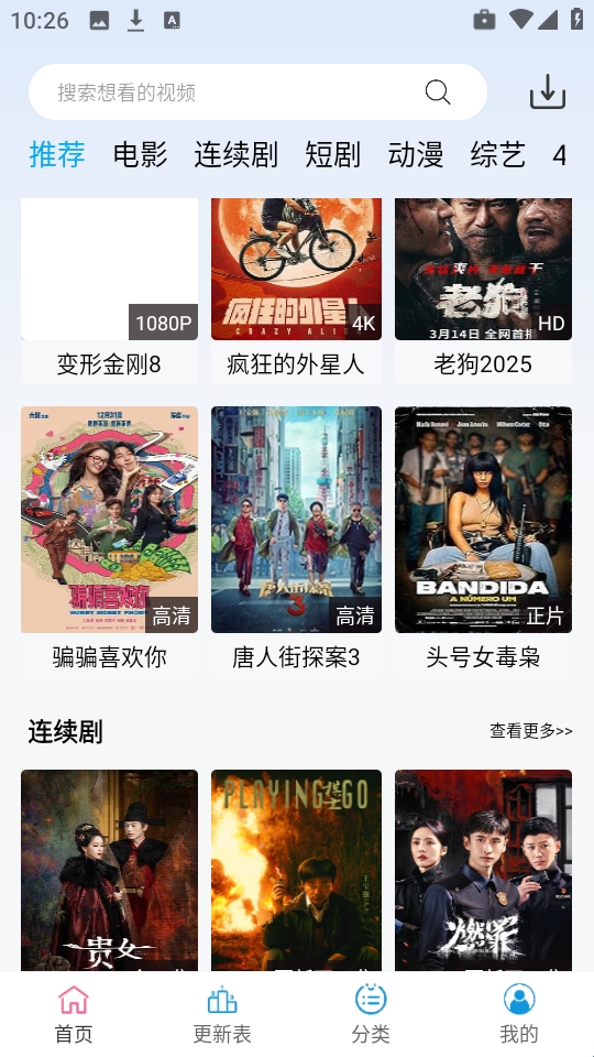 南瓜视频免费追剧,是一款可以免费看剧的影视。软件拥有多种分类,覆盖娱乐、爱情、热血、古风等十多种类别,轻松满足各个年龄段用户的观众。软件为用户提供多种清晰度,支持从普通清晰度到4K超高清的转变,即使在家也可以享受影院级的观看体验!