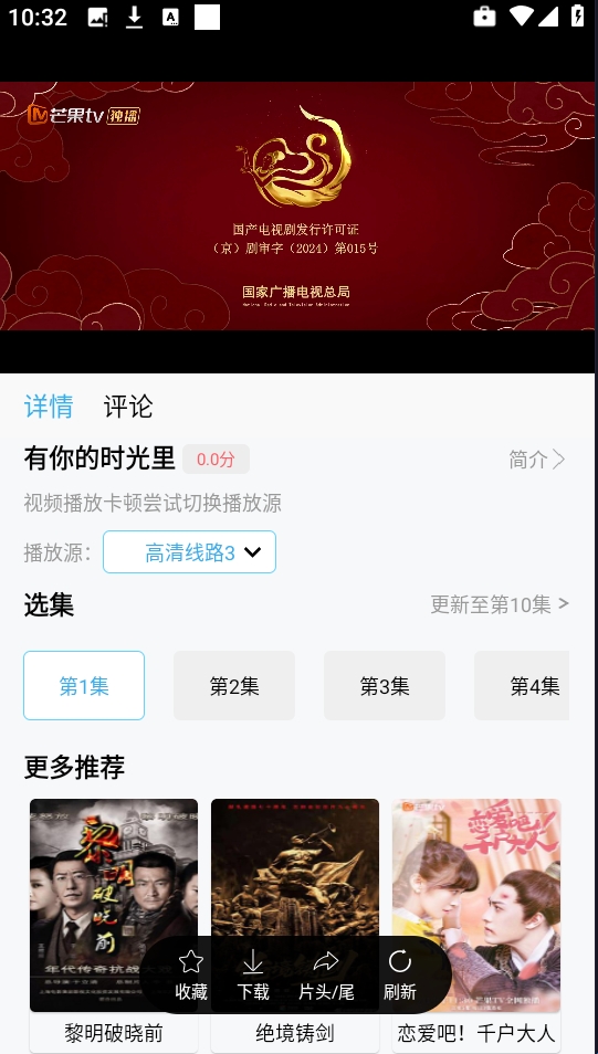 4、下载和缓存:支持下载和缓存视频,随时观看,提供视频节目的总时长并能随意切换。