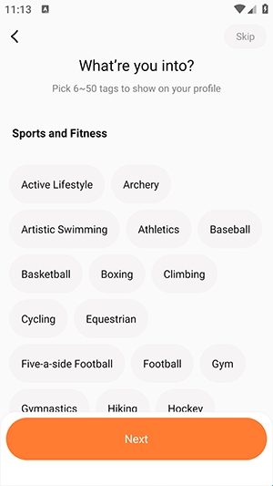 2、可以选择自己感兴趣的标签,有运动,艺术,文化等标签。