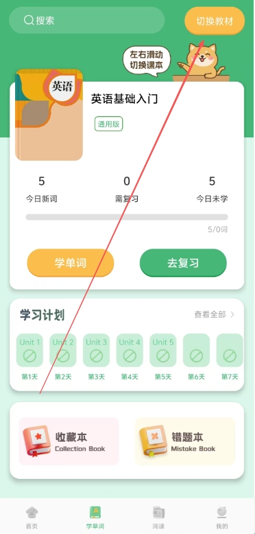 学霸单词本app怎么切换教材