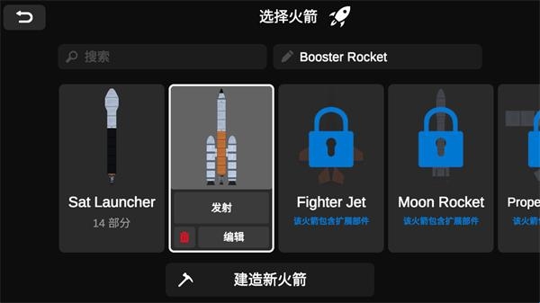 4、点击创建新火箭后你可以自由使用不同的配件来建造火箭,建造完毕后点击发射按钮。